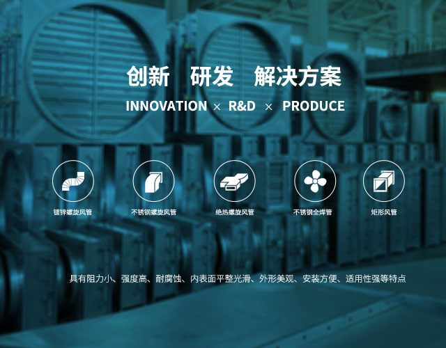專業為鍍鋅螺旋風管、不銹鋼螺旋風管、絕熱螺旋風管、不銹鋼全焊管、矩形風管等產品